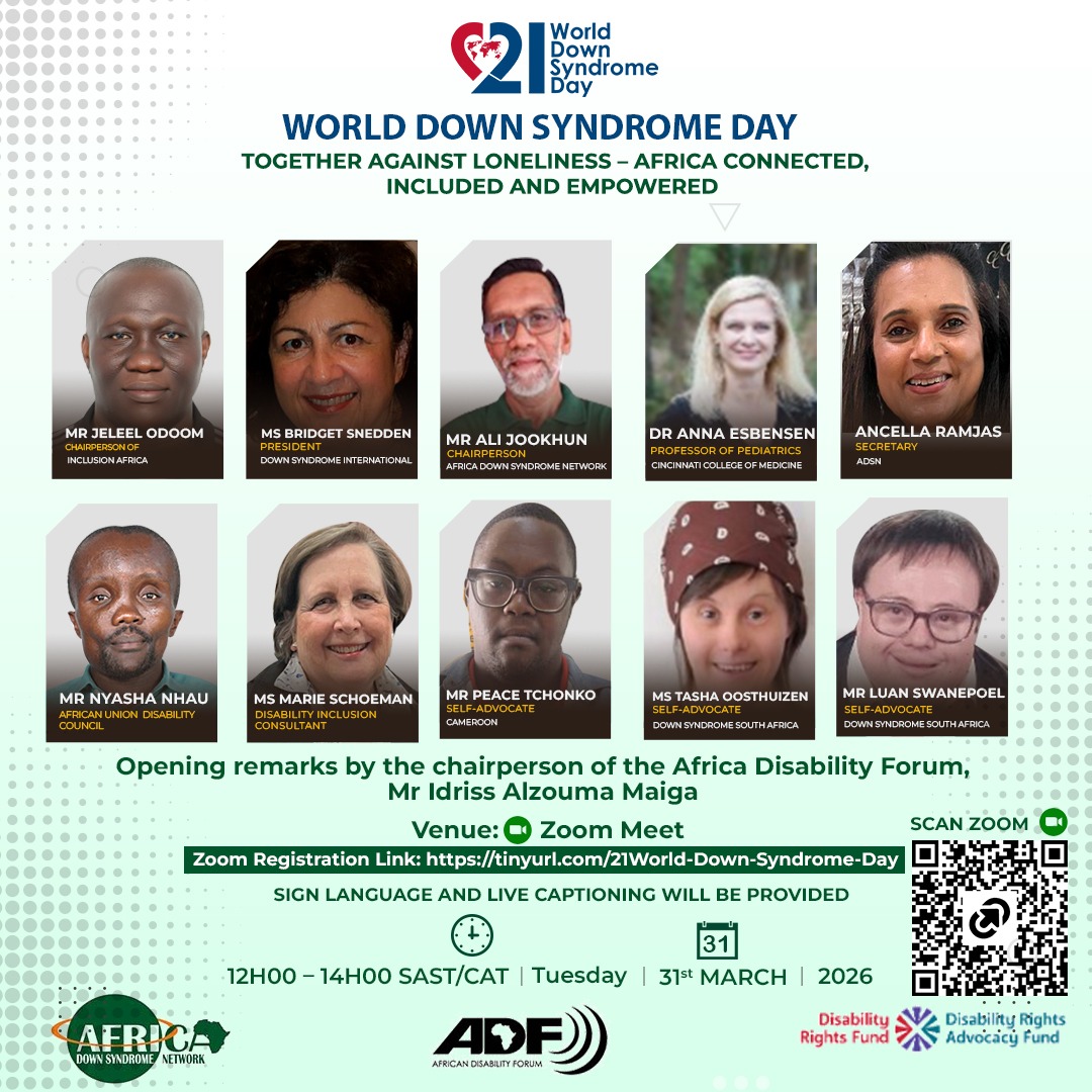 To promote, protect and advocate for a more inclusive and compassionate society for individuals with Down syndrome across Africa, including promoting the principles of the UN Convention on the Rights of Persons with Disabilities and the Protocol to the African Charter on Human and Peoples Rights of Persons with Disabilities in Africa, known as the Africa Disability Protocol (ADP).